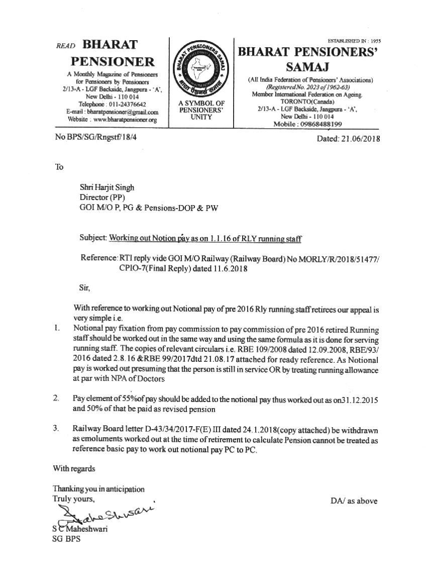 Delay in generation of revised PPOs of Pre 2016 retirees. DRM C,Rly Bhusaval replies to S C Maheshwari Secy Genl BPS